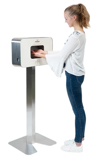 Besucher von Gesundheitseinrichtungen tragen potentielle Infektionserreger zu Patienten und Personal. Umso wichtiger ist eine Händedesinfektion bevor es auf Station geht. Der PRAESIDIO® Desinfektionsspender ist die Wahl wenn es um die Händedesinfektion im Eingangsbereich geht.