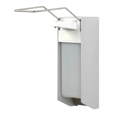 ingo-man® TLSX 26 A/24 Spender für Flüssigseifen und Desinfektionsmittel, für 1.000 ml Standard-Euroflaschen, extra langer Bedienhebel, eloxiertes Aluminium, mattsilber, austauschbare 24er Edelstahlpumpe mit gekröpftem Saugrohr, einstellbare Dosierung (ca. 0,7/ 1,0/ 1,5 ml/Hub), 1 Clip, inkl. PET-Leerflasche