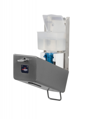 Nachfüllbarer Flüssigseifenspender mit Bedienhebel und CleanTip Technologie