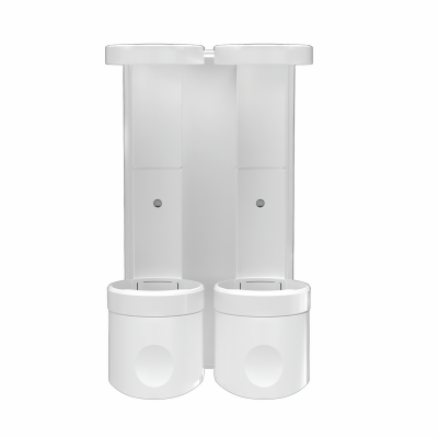 H2 dual cartridge dispenser, ABS plastic, white, for the use of recyclable pumps for various filling products (lotion, foam, gel), for recyclable 450 ml PET bottles, for wall mounting, ideal for washrooms, showers and toilet areas in hotels or anywhere hospitality hygiene is a priority