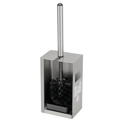 SanTRAL® Classic WBU 3 E Steel Touch (ST), toilet brush holder, especially corrosion-resistant stainless steel 1.4404 (AISI316L), with anti-fingerprint-coating, removable drip tray made of PCR plastic, stainless steel wall bracket, free-standing or for wall mounting, incl. brush with stainless steel handle