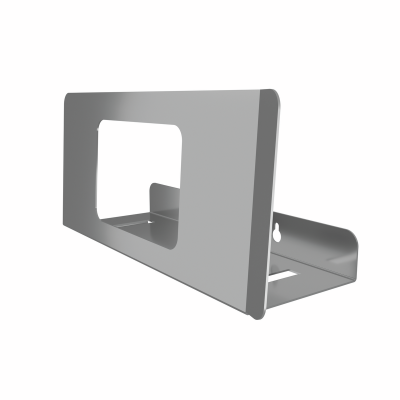 Flowpack adapter, for securing moist and disinfectant wipes in flow packs, made of brushed stainless steel, designed for one pack of disinfectant wipes (up to 100 sheets), with or without a plastic lid.