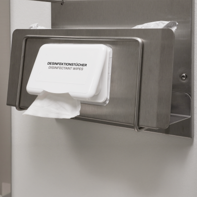 | Filling good: | 1 flowpack disinfectant wipes (up to 100 sheets), max. W 220 x H 110 x D 90 mm with a max. removal opening of W 115 x H 75 mm |