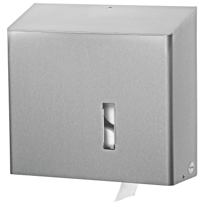SanTRAL® Classic MRU E Steel Touch (ST), multi-roll toilet paper dispenser for 4 standard toilet paper rolls, automatic rotation system, brushed stainless steel, with anti-fingerprint-coating, lockable, with fill level window, max. roll diameter 125 mm, inner roll diameter: min. 40 mm, sloped-top housing prevents placement of unwanted objects on dispenser