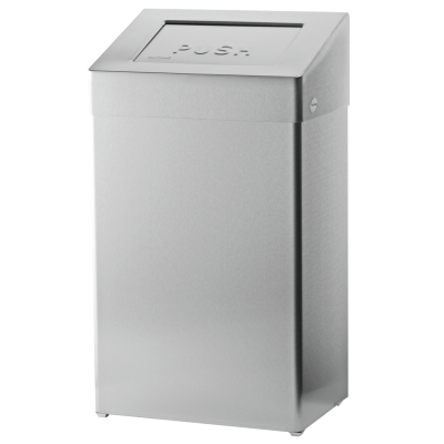 SanTRAL® Classic ABU 50 E Steel Touch (ST), waste bin, 50 liters, brushed stainless steel, with anti-fingerprint-coating, with self-closing stainless steel lid, with bag holder, free-standing or for wall mounting