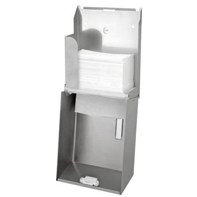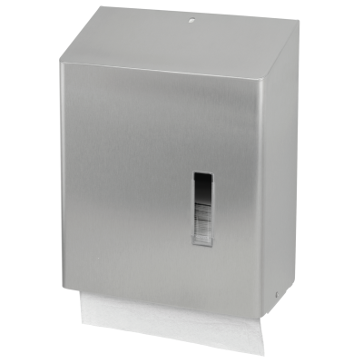 SanTRAL® Classic HSU 31 E Steel Touch (ST), paper towel dispenser with plastic removal, for max. 2 packs of paper towels (approx. 500-600 sheets) with Layerfold, ZZ-fold paper towels, brushed stainless steel, with anti-fingerprint-coating, lockable, with fill level window